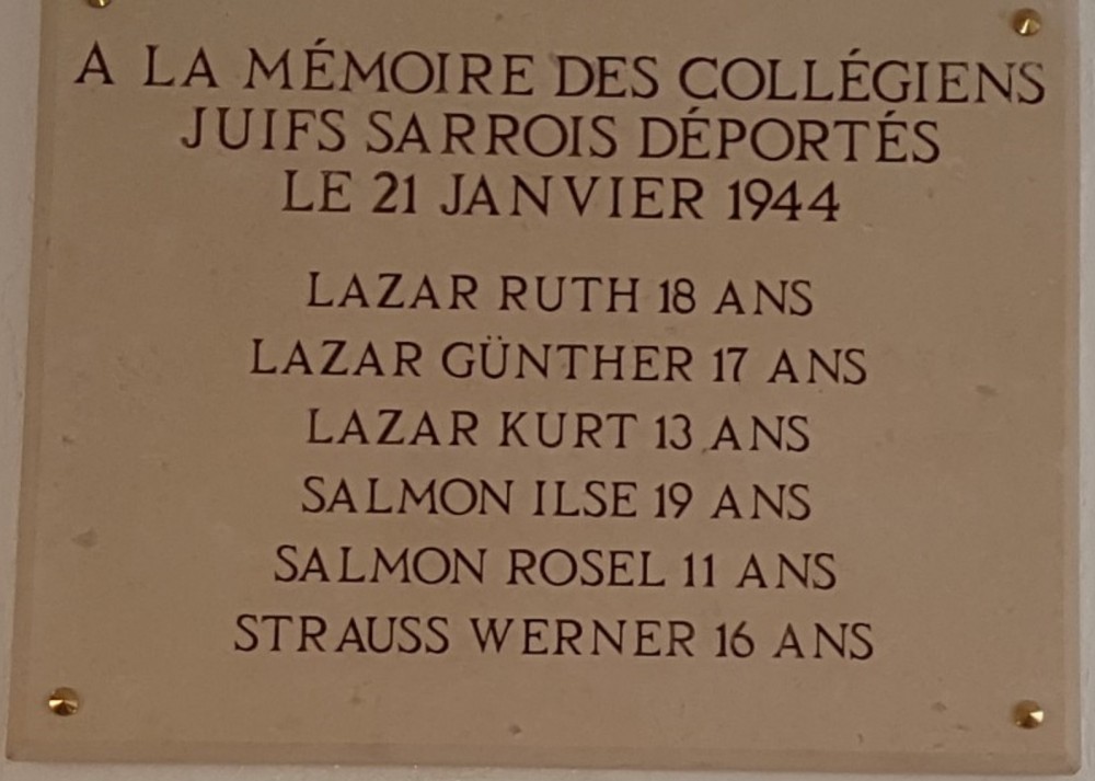 Dans un deuxième temps les participants à la cérémonie se sont rendus à l’ex collège ROUMANILLE pour se recueillir devant la plaque du Souvenir en l’honneur des 6 collégiens Juifs-Sarrois résidants à Nyons déportés le 21 janvier 1944 et morts à Auschwitz.