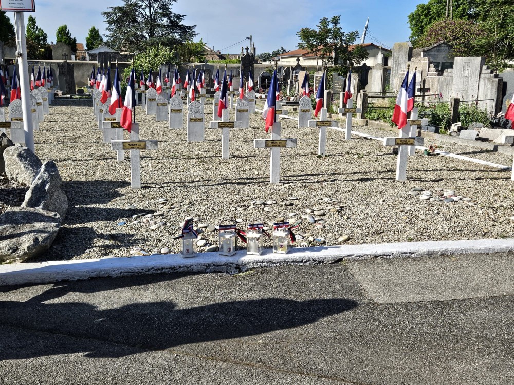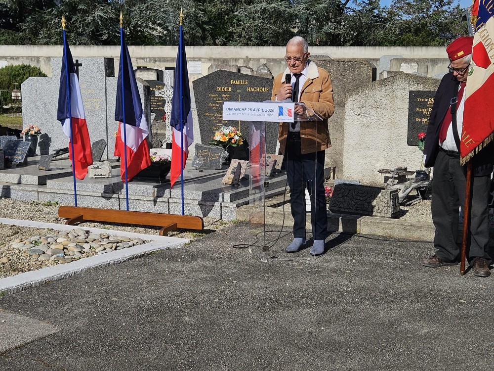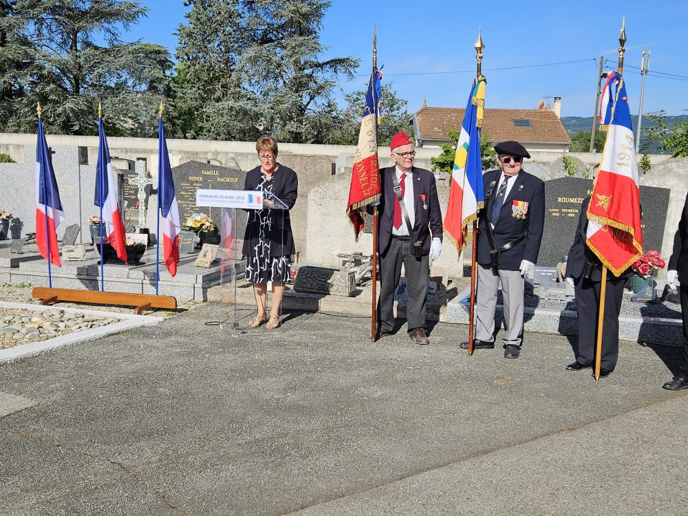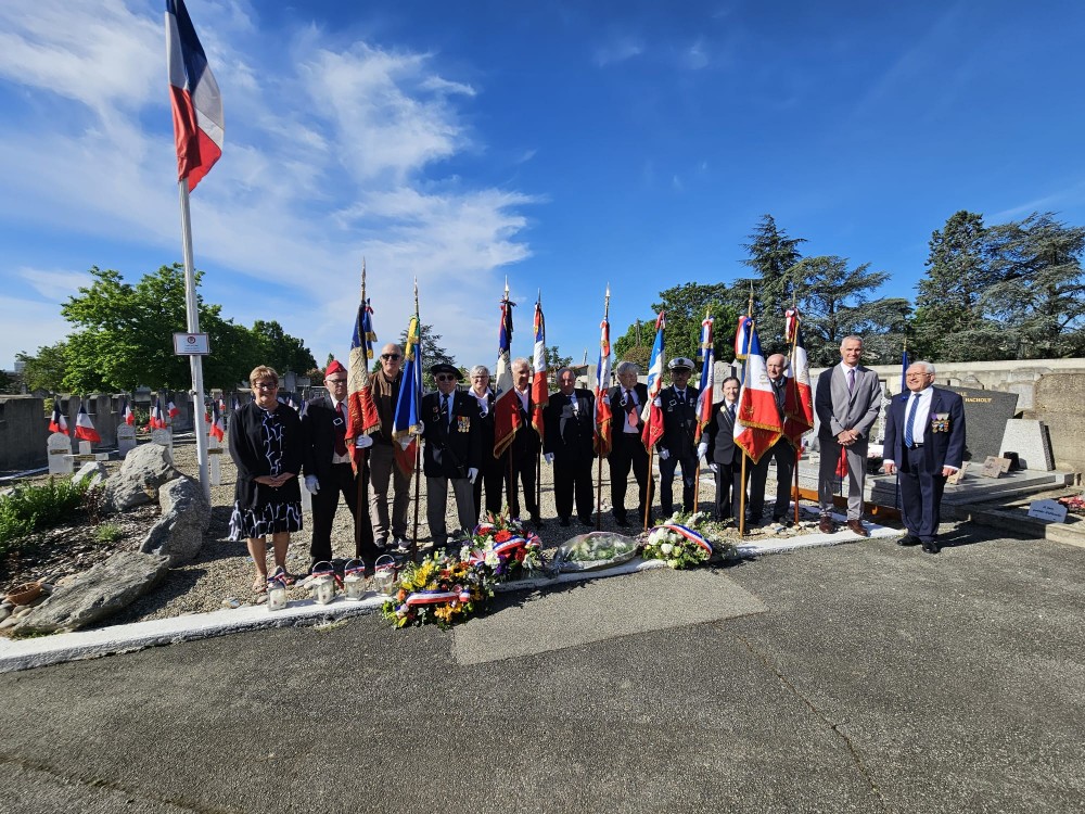 A 9h30, une cérémonie s'est déroulée Square du Souvenir Français au cimetière Gay Lussac, en présence de Madame Eliane GUILLON, représentant la Maire de Bourg les Valence, de Monsieur Vincent NORE, représentant le Maire de Valence, de personnalités civiles et militaires et des représentants des Ordres nationaux et des associations patriotiques ou d’anciens combattants avec leurs drapeaux.