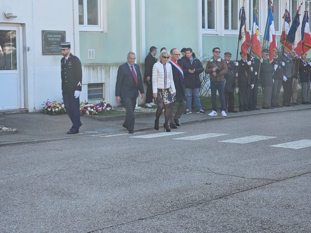 La cérémonie s'est déroulée sous la Présidence de Monsieur Thierry DEVIMEUX, Préfet de la Drôme, en présence de Monsieur Thibaut MONNIER, Député de la Drôme, de Monsieur Bernard BUIS, Sénateur de la Drôme, de Madame Marie-Pierre MOUTON, Présidente du Conseil départemental de la Drôme, de Monsieur le Maire de Valence, représenté, de Monsieur Laurent de CAIGNY, Procureur de la République, du Colonel Philippe MARESTIN, commandant le Groupement de Gendarmerie Départementale de la Drôme, de nombreuses personnalités civiles et militaires, des représentants des Ordres nationaux et des associations patriotiques et d’anciens combattants avec leurs drapeaux.