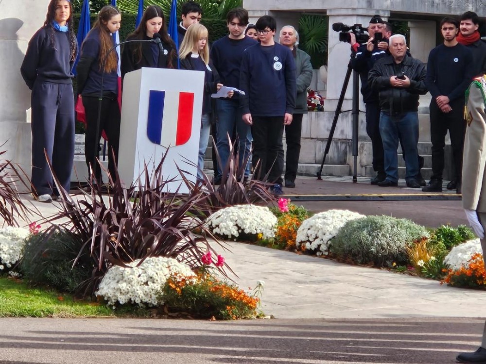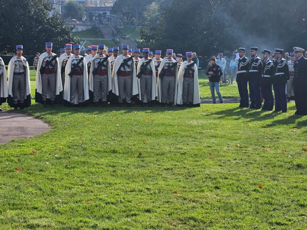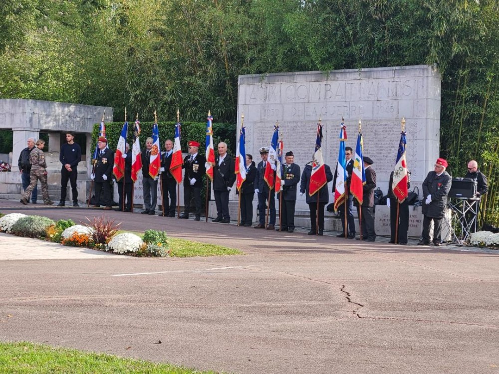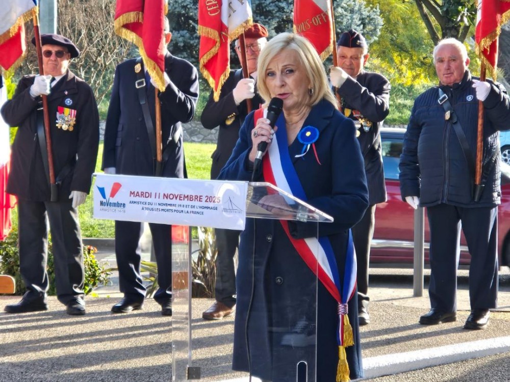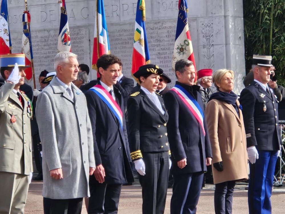 A 11h, une cérémonie militaire s'est déroulée au monument aux Morts du parc Jouvet de Valence, sous la Présidence de Madame Marie-Aimée GASPARI, Préfète de la Drôme, en présence de Monsieur Paul CHRISTOPHLE, député de la 1ère circonscription de la Drôme, Monsieur Nicolas DARAGON, maire de Valence, Madame Véronique PUGEAT, Vice-présidente du Conseil départemental, Monsieur Laurent MONNET, conseiller départemental, du colonel Maxime LAUDET, chef de corps des Spahis, de l’adjoint au commandant le Groupement de gendarmerie départementale de la Drôme, de Madame Laure BONNET, directrice de l’ONaCVG de la Drôme, de nombreuses personnalités civiles et militaires, des représentants des Ordres nationaux et des associations patriotiques et d’anciens combattants avec leurs drapeaux.