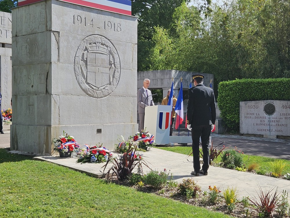 A 11 h, une cérémonie militaire s'est déroulée au monument aux Morts du parc Jouvet de Valence, sous la Présidence de Monsieur Julien HENRARD, représentant la Préfète de la Drôme, en présence de Monsieur Franck SOULIGNAC, Président du conseil départemental de la Drôme, de Monsieur Pierre-Olivier MAHAUX représentant le Maire de Valence, du colonel Yonis FOREST, commandant le Groupement de Gendarmerie Départementale de la Drôme, de nombreuses personnalités civiles et militaires et des représentants des Ordres nationaux et des associations patriotiques ou d’anciens combattants avec leurs drapeaux.