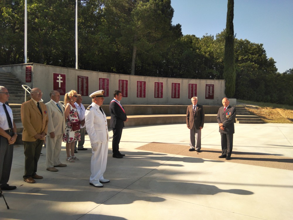 Monsieur Olivier BERNARD, Maire de Livron sur Drôme, nous accompagnait dans cette démarche de Mémoire, au cours de laquelle Monsieur MARQUET se voyait remettre la Médaille de Porte-Drapeau par le Général (2s) Christian VAN DUYNSLAGER, Président de Section de la Drôme de la SMLH, en présence du Colonel (er) Jean-Claude LANGLAIS, secrétaire de la section de la Drôme, du Colonel (er) Michel PERROUX, Président du comité de Valence, du Docteur Edouard TOROSSIAN, Vice-président, et du Lieutenant-colonel (er) Marcel SIRDEY, Président du comité de Pierrelatte.
